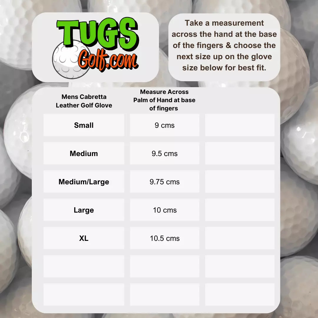 A great fitting cabretta leather golf glove, see size table photo for sizes.